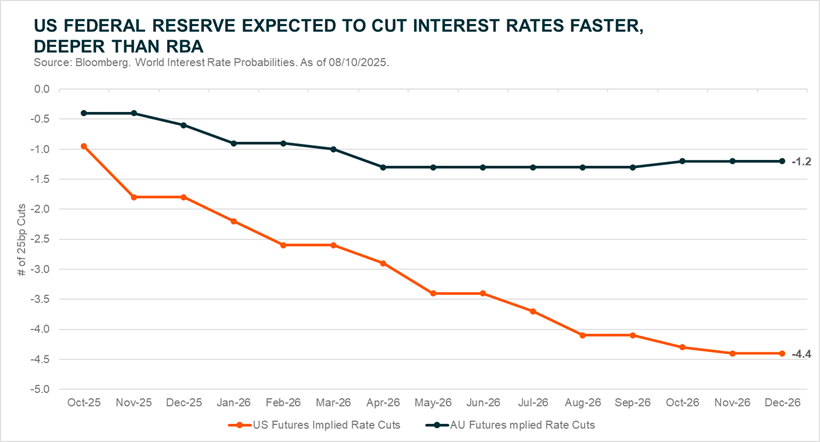 Looking ahead, near-term tailwinds such as Australia’s strengthening trade balance (in part thanks to gold exports) and the RBA’s relatively shallow rate cut path point to continued strength for the Australian dollar.