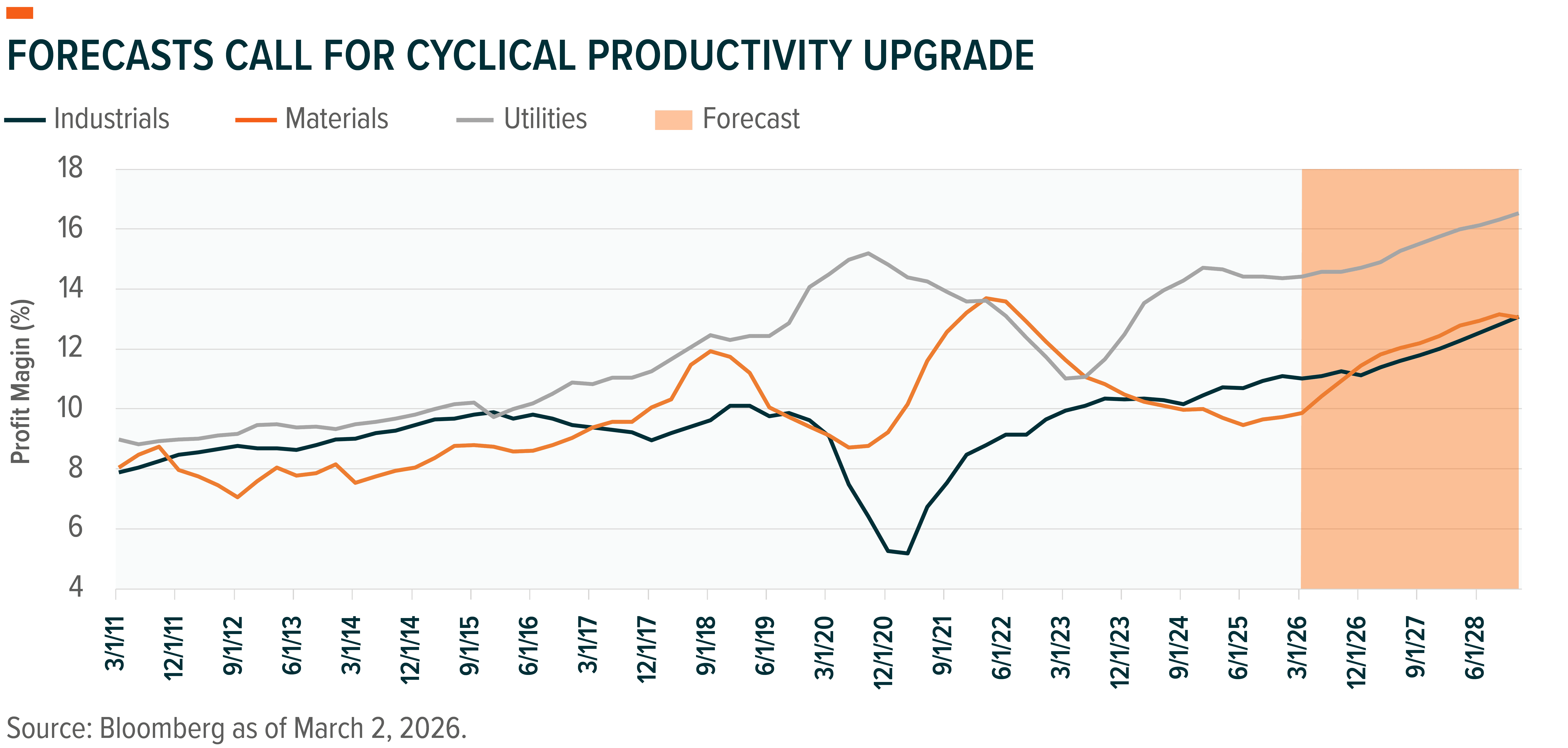 - The market rotation into cyclicals is backed by fundamentals, but AI and automation technologies are likely critical to meeting mounting expectations.