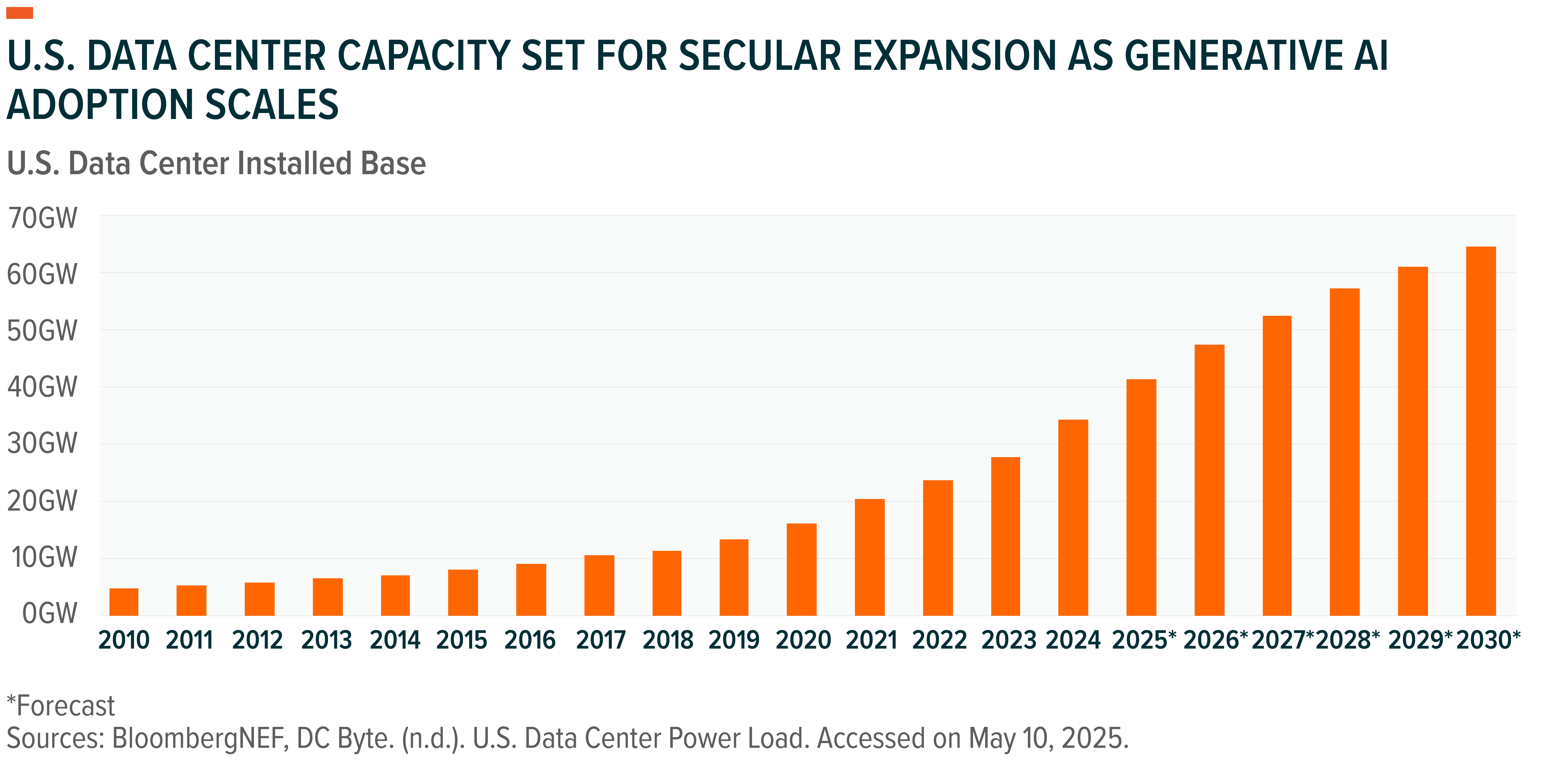 Worldwide, data center power demand is expected to grow to 945 TWh by the end of this decade, more than doubling from the total consumption at the end of 2024.20 Majority of this expansion is yet to be built. For investors, this potential and global dispersion reinforces the opportunity for exposure beyond just U.S. hyperscalers.