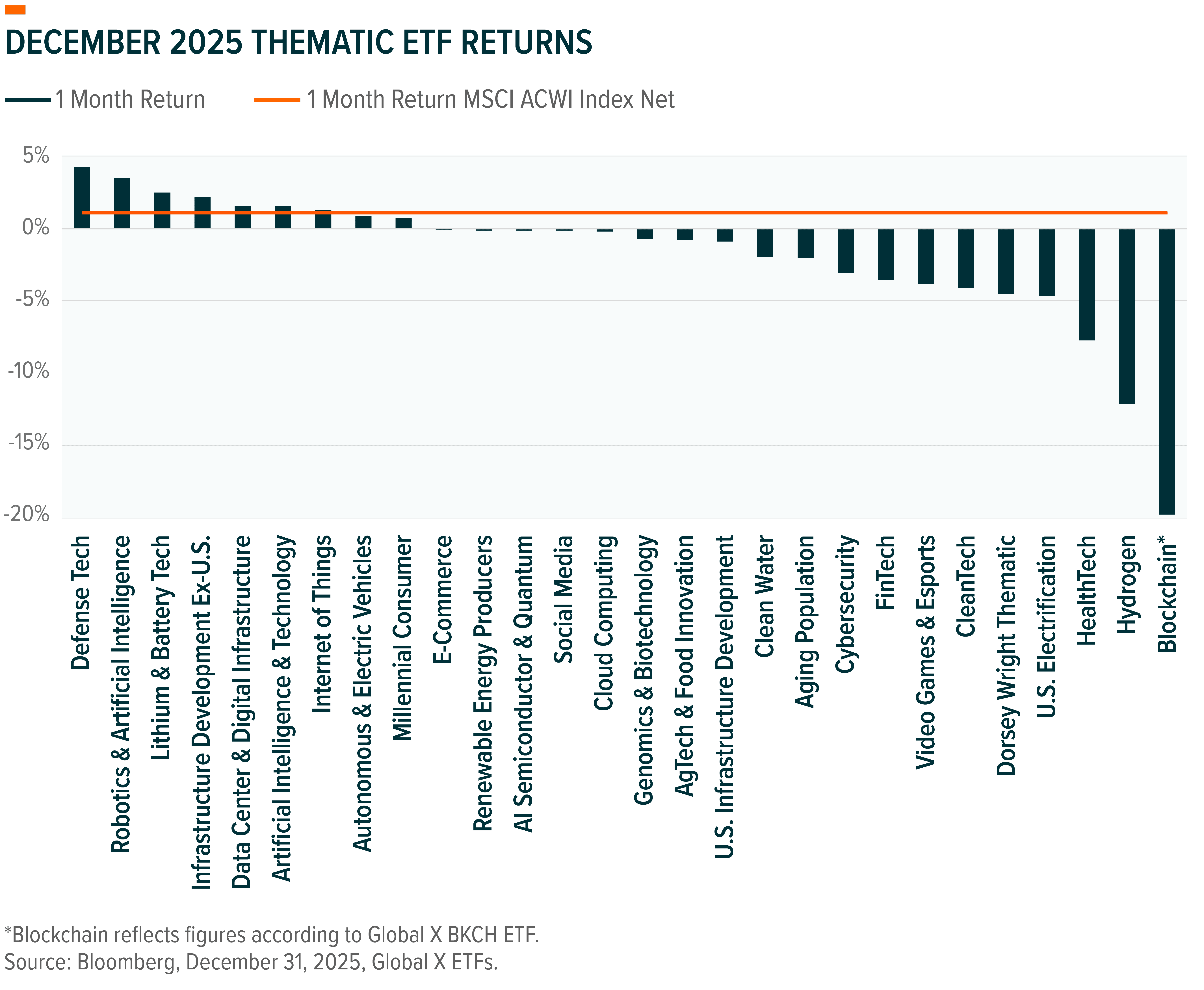 To see individual ETF holdings and current performance across the Global X Thematic Suite, including information on the indexes shown, click these links: