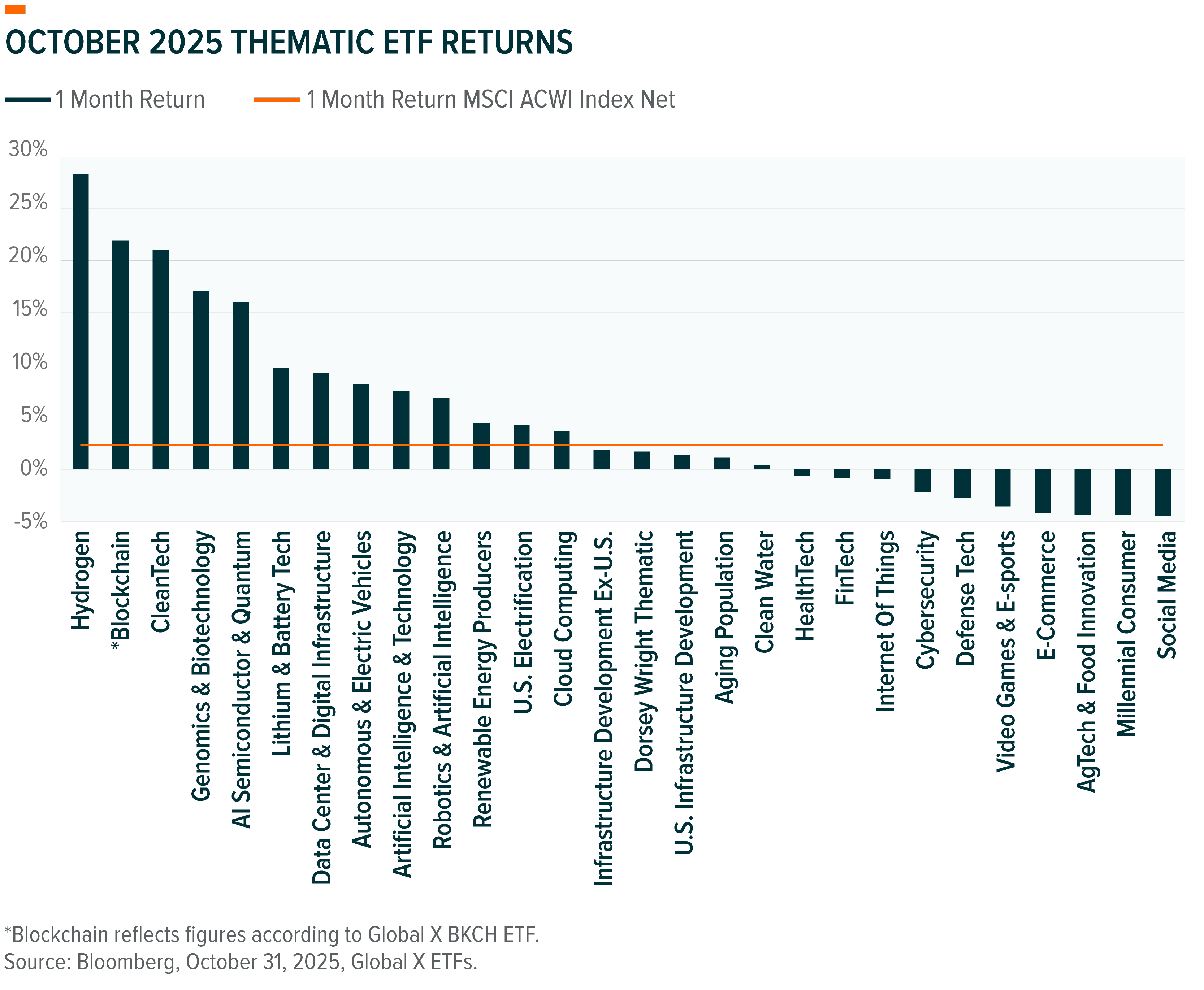To see individual ETF holdings and current performance across the Global X Thematic Suite, including information on the indexes shown, click these links: