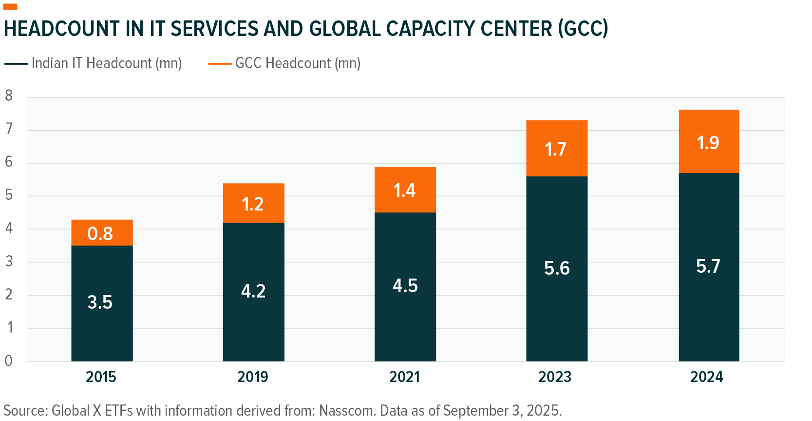 - IT Services:Although the new $100,000 fee for U.S. H-1B visa applicants will be a headwind, the move could also accelerate offshoring trends to India, which would help nearshoring and automation domestically, while also potentially reducing “brain drain” as fewer Indian students and professionals go abroad. Finally, this shift could drive higher IT wages in India and further support urban consumption.