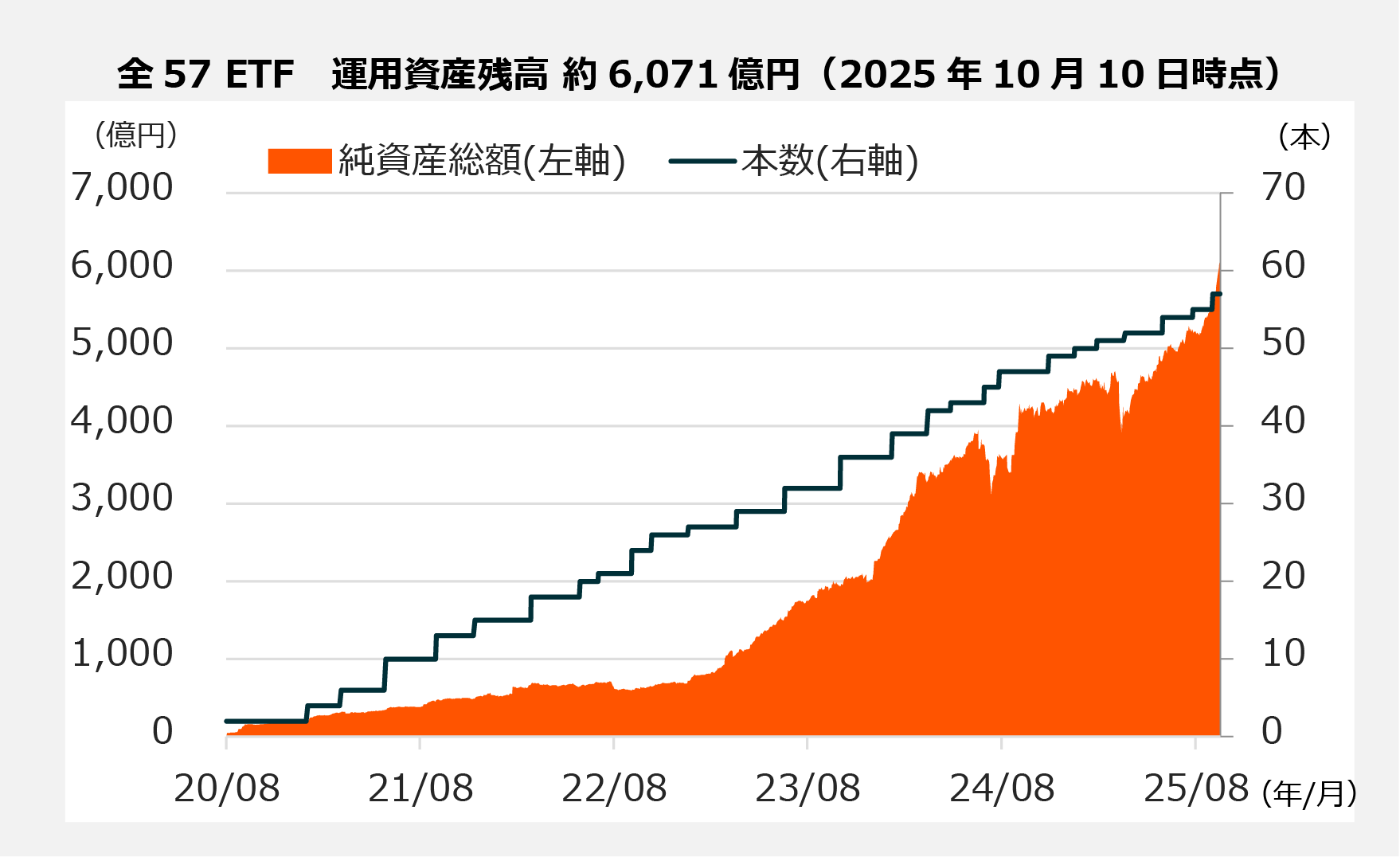 今年8月、運用資産残高が5,000億円を突破して以降も着実に残高は増加し、同月には「グローバル X グローバルリーダーズ-日本株式 ETF」(2641)の残高が1,000億円に到達しました。
